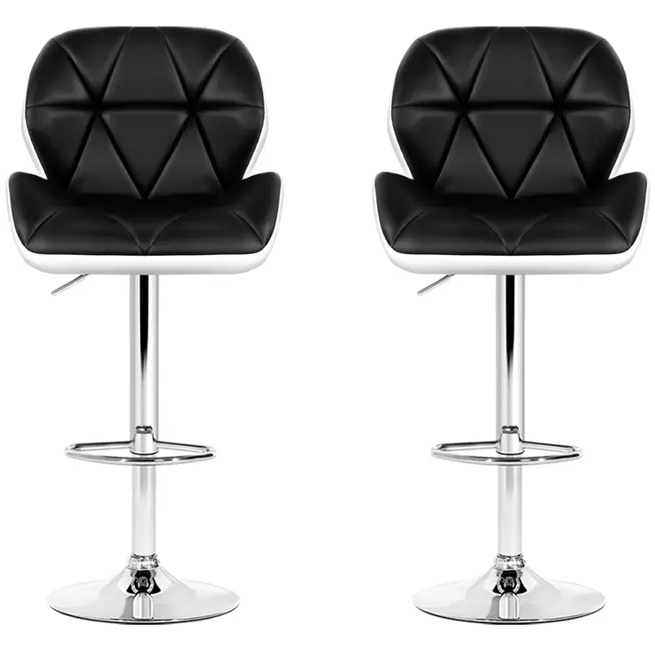 Artiss Black And White Gaslift Swivel Barstool With Rhombus Motif 2 Pack