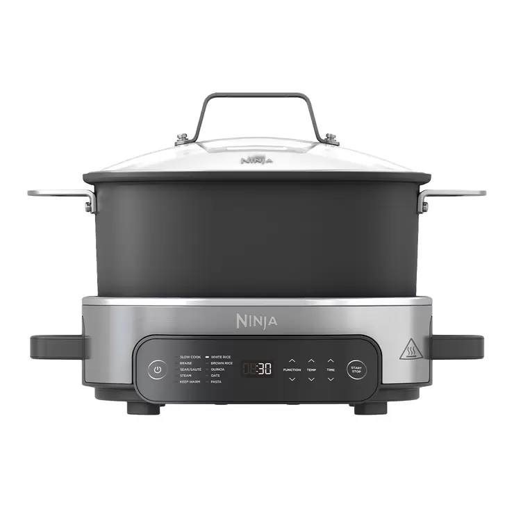 All in one cooker features a 6 litre cooking pot that can cook up to 4 cups of rice, 450g of pasta or a 3.2kg roast — perfect for preparing delicious one pot dinners or quick, hearty sides to compliment your main dishes. Choose between 10 cooking functions: Slow Cook, Braise, Sear/Sauté, Steam, Keep Warm, White Rice, Brown Rice, Quinoa, Oats and Pasta. Cook everything from fluffy grains to full meals for endless possibilities. It's fast and simple — just set it and forget it. Toss all your ingredients into the cooking pot and come back to a flavourful, hassle-free meal your whole family will love. This versatile multi-cooker eliminates the need for an oven and stove, resulting in a faster, easier cleanup. Plus, its compact design fits easily on your benchtop and has cool-touch handles on the base for easy transport to gatherings. With the Ninja Foodi PossibleCooker, the possibilities are endless.The product features: