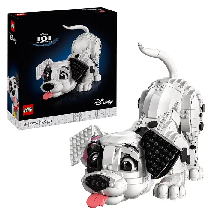 Embrace your love of puppies with this 101 Dalmatians Puppy 43269 LEGO Disney building set. Celebrate a classic Disney hit and customise your puppy to create your own unique LEGO Dalmatian then pose it in your home or office. You could create Patch Penny Rolly Pepper Lucky or Freckles or any other pup you like! This collectible LEGO Disney building set for adult fans of Disney’s 101 Dalmatians makes a cute display and is a nostalgic gift giving idea for anniversaries or holidays. It can be built alongside the Lucky and Penny 101 Dalmatians Puppies companion construction set (sold separately) to share the experience with a younger fan.Indulge yourself with a buildable set that uses advanced building techniques and fosters creative joy as you click the last piece into place. As you build immerse yourself in an intuitive experience with the LEGO Builder app. You can zoom in and rotate the model in 3D track progress and save sets in one place. Building set contains 1,722 pieces.