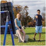 The backwoods pastime of axe throwing has gone mainstream and we're here for it. Grab your axe, take aim at the target, and go for the bullseye. The target frame stands over 1.5 metre tall and is constructed out of 38 mm steel tubing and can handle your best shot. This set includes 8 throwing axes and 8 throwing stars that are fun for all ages. The axes and stars are constructed from plastic and foam and are specifically designed to stick in the unique bristle target. Features built in axe storage and a folding target design for portability and storage. So get out and test your accuracy, sharpen your skills, or just have fun with your friends and family throwing axes and throwing stars at the EastPoint Sports Ultimate Axe Throw Target.This product features: