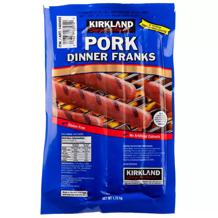 Kirkland Signature Pork Dinner Franks 1.72kg