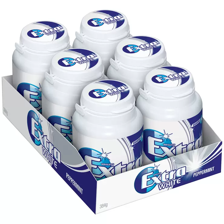 Wrigley's Extra White Sugarfree Peppermint Gum 6 x 64g Bottles