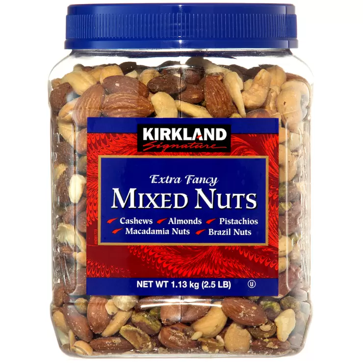 Kirkland Signature Extra Fancy Mixed Nuts is an assortment of great tasting cashews, almonds, pistachios, Brazil nuts and macadamias. Roasting gives our nuts mix a delightfully crunchy bite, perfect as a healthy snack, salad topping or just simply a great addition to any meal. These nuts are plump, fresh and taste delicious.