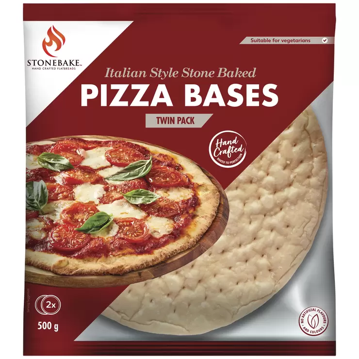 Traditional Stone Baked Pizza Bases which make great family meals. Simply add your favourite topping and bake for 10mins! Suitable for Vegans and Vegeterians. No Artifical Flavours or Colours. 1kg Value Pack perfect to stock up in the freeze for up to 12 months.