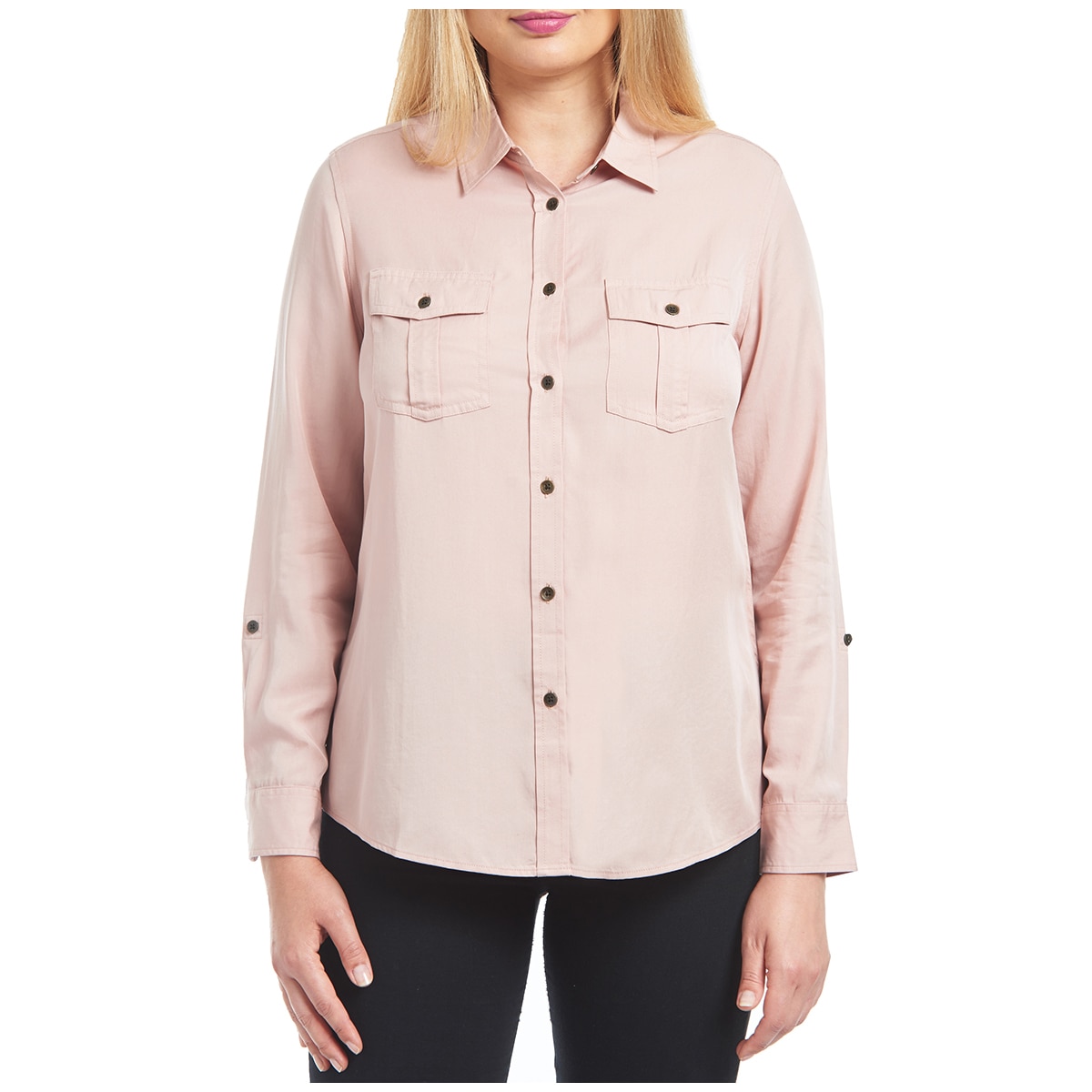 Jachs Girlfriend classic long sleeve tencel top is a great casual wear shirt to keep in your wardrobe. It's made from 100% tencel lyocell fabric, which is one of the most environmentally friendly regenerated fabrics. The top has two front chest pockets, regular collar, and is designed to drape over your body giving it a casual feel, particularly if you roll up the sleeves with it's roll up tabs.