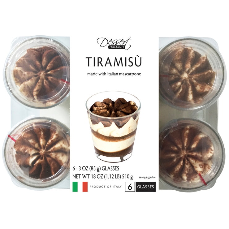 Tiramisù dessert 6 x 85g, one of the most famous Italian desserts. Made with authentic Italian Mascarpone, following traditional Italian recipe.