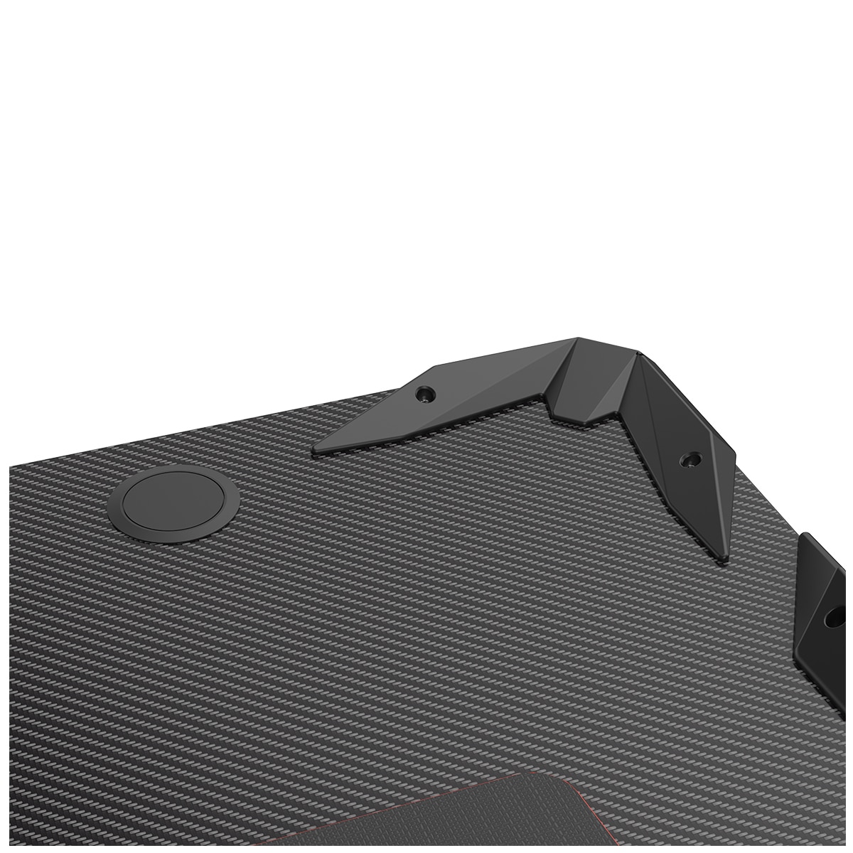 This gaming desk is specifically built for gamers with a stable and sturdy Z shape design. It has wonderful LED lighting, gaming mouse pad, controller stand, cup holder and headphone hook. Made from reliable carbon fibre texture material.