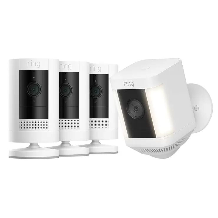 | Cameras included | 3 x Ring Outdoor Camera Battery Stick Up Cam + Spotlight Camera Plus Battery |