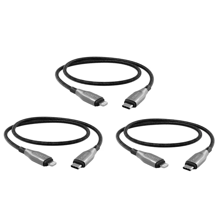 Cygnett Armoured Lightning to USB-C Cable 1M Triple Pack Black CY5169PCCCL