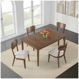 The Parker 7 Piece Dining Set easily grows to accommodate six for dinner. There’s plenty of elbow room and comfort, as the table expands easily with a removable 45.8 cm leaf that stores under the table. Special accents include veneer edge, banding on the top panel of the table and rounded legs on both the table and chairs. Each chair boasts cushy foam and attractive beige fabric. With rubberwood solid and composite wood construction, the Parker Dining Set can be at home for many meals to come.This product features: