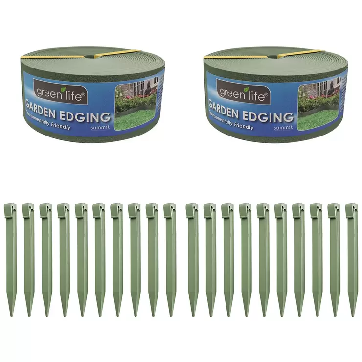 Greenlife Plastic Garden Edging 2 x 1000 x 7.5cm With 20 Pegs Eucalyptus
