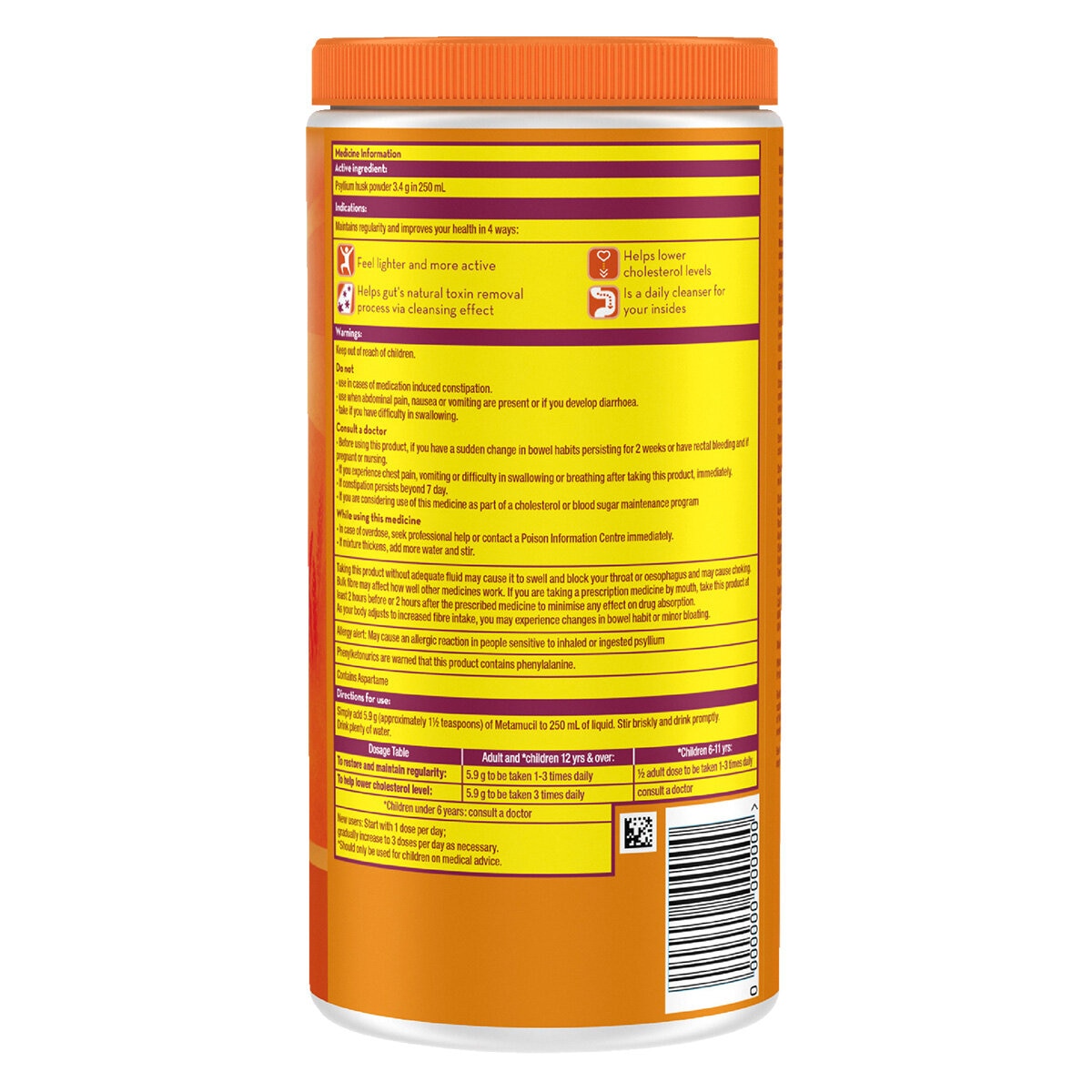 The Metamucil Multi-Health Fibre with 100% Psyllium is a natural orange smooth supplement that contains 4 x 114 doses and is designed to support digestive health. Contains: Psyllium husk powder 3.4 grams in 250 ml.