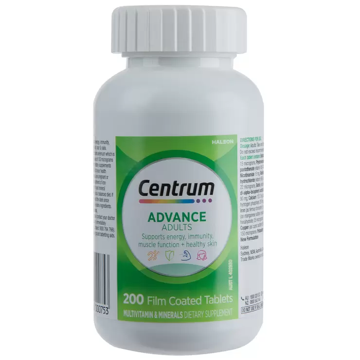 Centrum Advance, Multivitamin with Vitamins and Minerals to Support Energy, Immunity, Muscle Function and Healthy Skin.Support your body with Centrum Advance so you can live life in full colour. Centrum Advance is designed for adults aged 18+ and contains multiple vitamins to help support energy, immunity, muscle function and healthy skin. Each tablet contains multiple vitamins to help fill nutritional gaps.