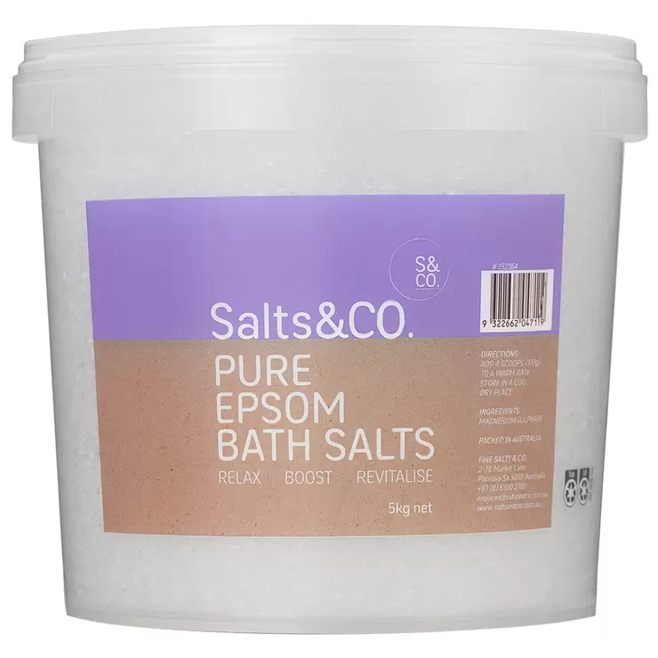 A bath soak that is all natural to cleanse, detoxify and soothe the body. Well known for its wellness benefits Salts & Co Pure Epsom Bath Salts is magnesium sulphate in its purest form. Epsom salts are commonly used in the detoxification process whereby the sulfate component helps to draw heavy metals and toxins out of the body while the magnesium component acts as a muscle relaxant.