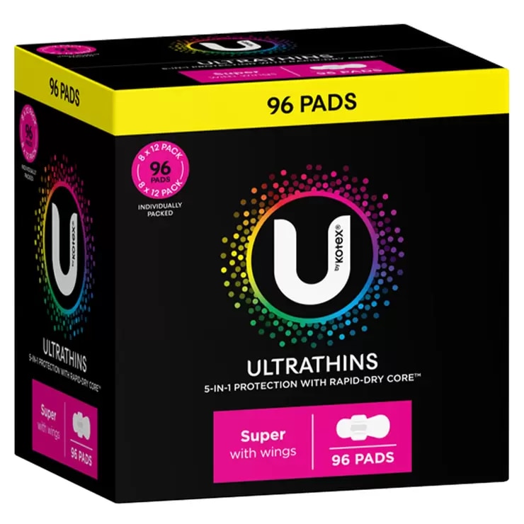 U By Kotex Ultrathin Super Pads With Wings 96 pack
