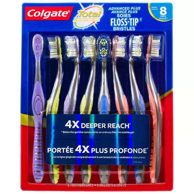 Colgate 360° Floss Tip Manual Toothbrush 8 Pack Medium