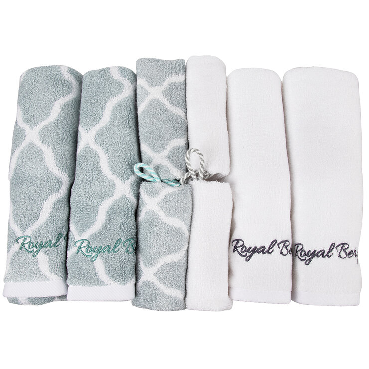 Royal Bergen Bamboo Hand & Face Towel Gift Set 8 piece Mint & White