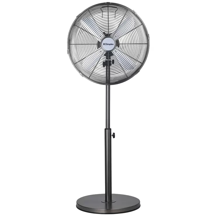 This Dimplex high velocity pedestal fan is stylish and elegant with a gunmetal finish. It features high velocity air flow, it's designed to cool medium to large sized rooms, and it's versatile with three speeds, an oscillating function, a tilt adjustable head and rear mounted controls. It can also be adjusted to a height of 1.25m, and it has a four piece metal blade.| Brand | Dimplex |