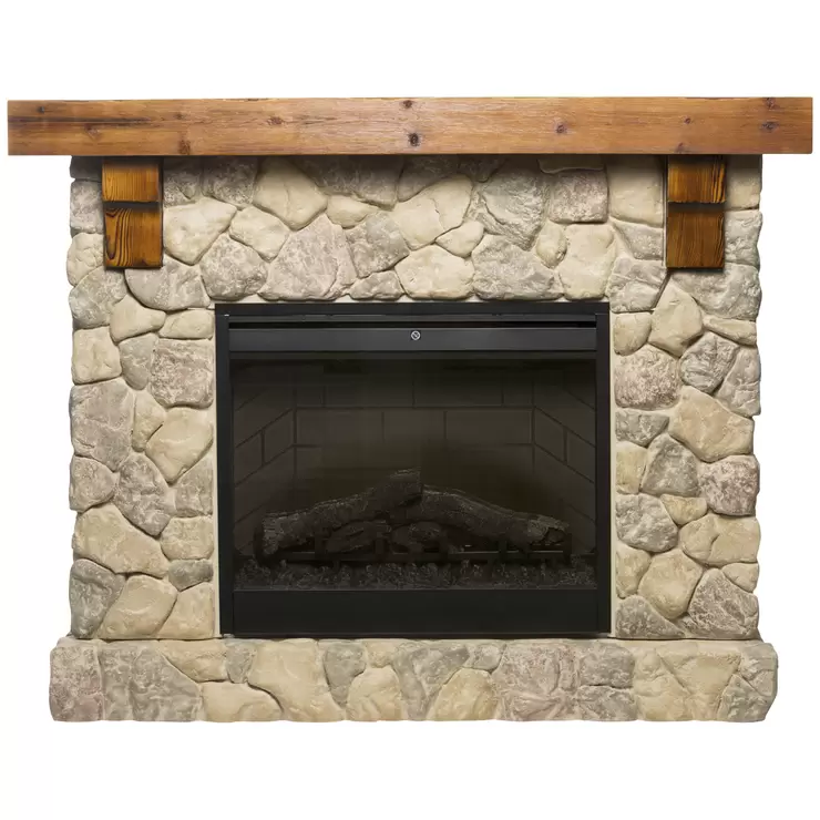 Capture the feel of a private retreat! This simply stunning mantel recreates the rustic charm of a woodland retreat with the lifelike look of natural stone and hand-hewn pine. Set up in minutes, no expensive installation or venting required. The LED flame effect can be used independently of the heat source. Can be moved from room to room.