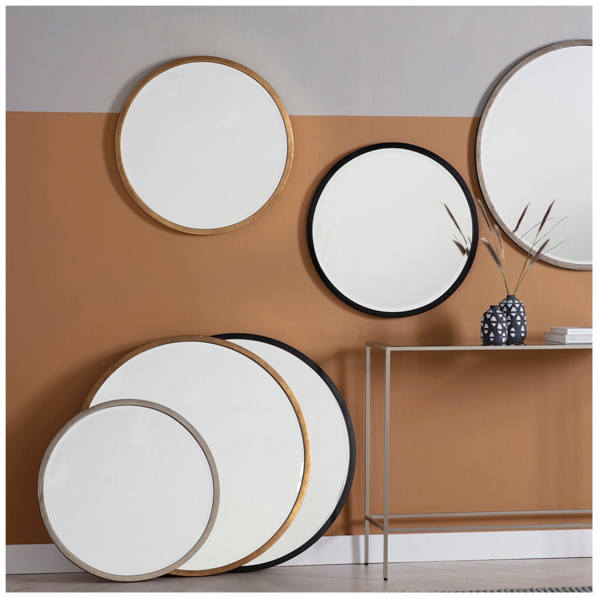 The Higgins is a sleek and stylish round wall mirror featuring a thin antique gold metal frame and a simple bevelled center mirror, adding a striking and eye catching feature to any interior. Wall mounting hooks and installation instructions supplied.