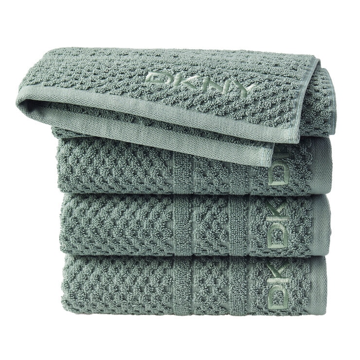 Upgrade your bathroom essentials with a premium touch using the DKNY Amsterdam Logo 4-piece Hand Towel Set. Made from plush cotton terry, these towels are soft to the touch, highly absorbent, and quick to dry, perfect for daily use. Offered in white, green, blue, or tan, each hand towel features an embroidered DKNY logo for an effortlessly refined look.This product features: