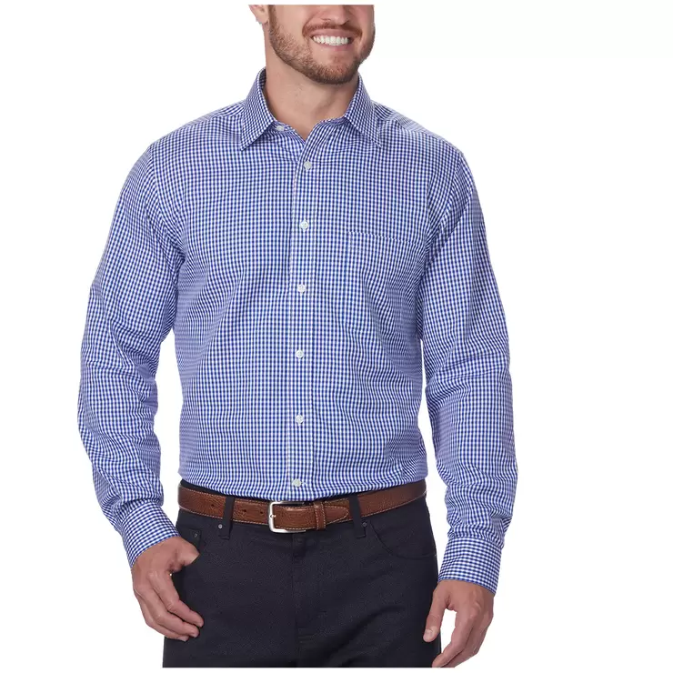 The Kirkland Signature men's long sleeve dress shirt is made with 80/2 yarn for colour vibrancy, with seven points of seam taping to minimise puckering. It's also tailored with reinforced stitching and high quality buttons, making it durable.
