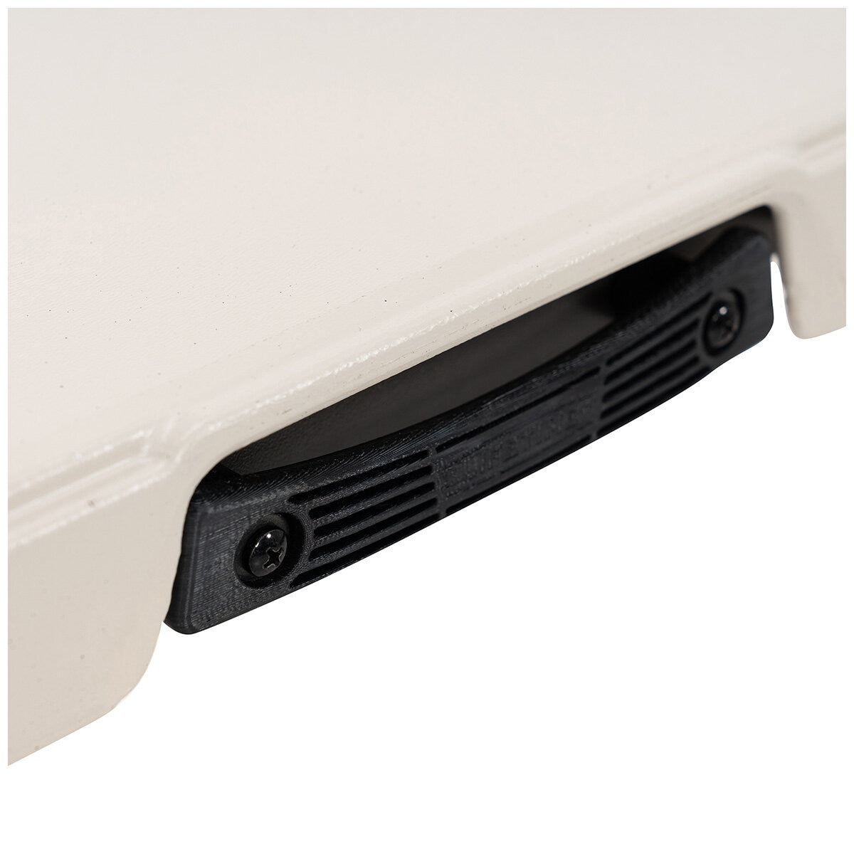 The one hand adjust makes it easy to adjust the table to any of the three height settings. A spring loaded handle lets you easily transport the table to any location.