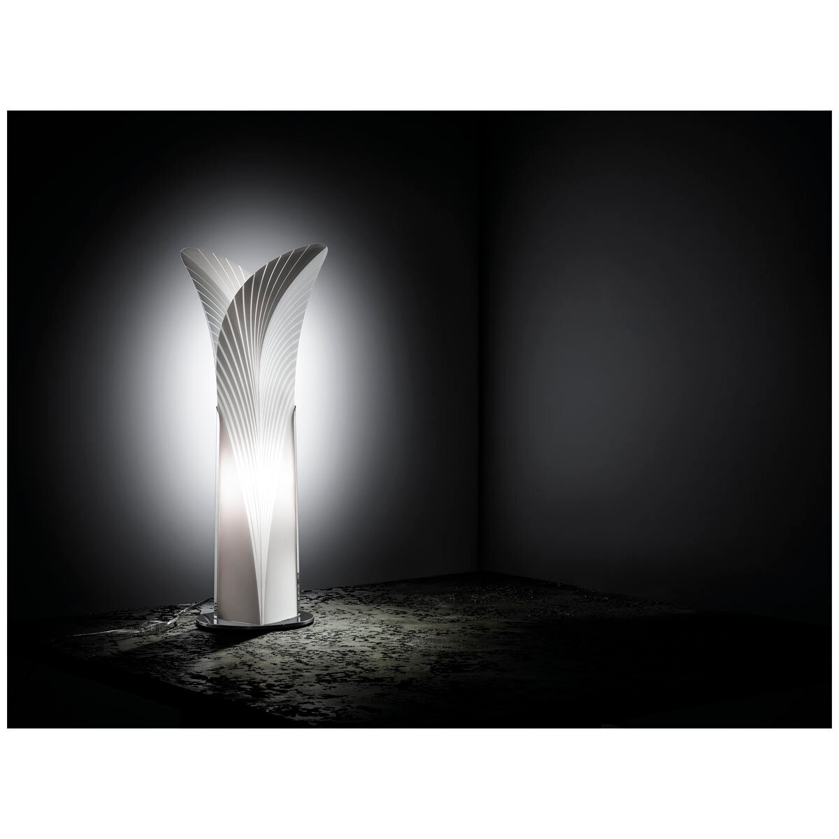A few kilometres from the Moroccan coast in the Atlantic Ocean, sunlight bathes the palm fronds covering the island of Las Palmas. This suggestive landscape brought life to the eponymous collection, staring from a two-dimensional sheet of Opalflex, sculpted into a three dimensional form. Las Palmas brings a monochromatic, minimal summer breeze to every interior.