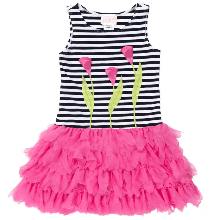 The Biscotti girls' dresses are crafted in four adorable styles with either a fluted or layered tulle skirt to complement your little one's personality.