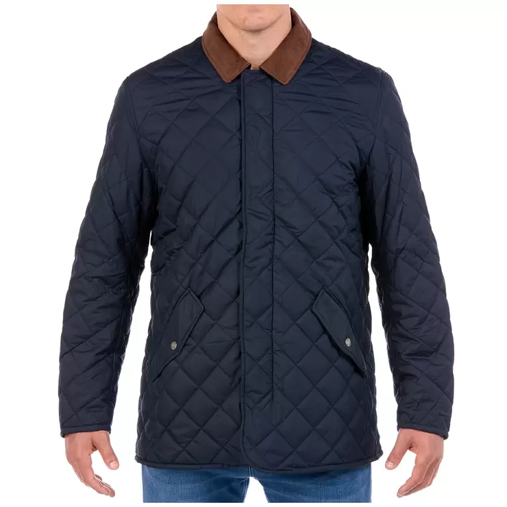 Ideal for fall, this quilted jacket is cast in a timeless diamond pattern. A water resistant and water repellent construction keeps you dry against the elements, while the plaid interior is fully lined with Thermore Ecodown fill to add additional warmth. It features a center front zipper with hidden button storm flap, two exterior and two interior pockets, and it’s finished with adjustable back tabs and a corduroy collar.