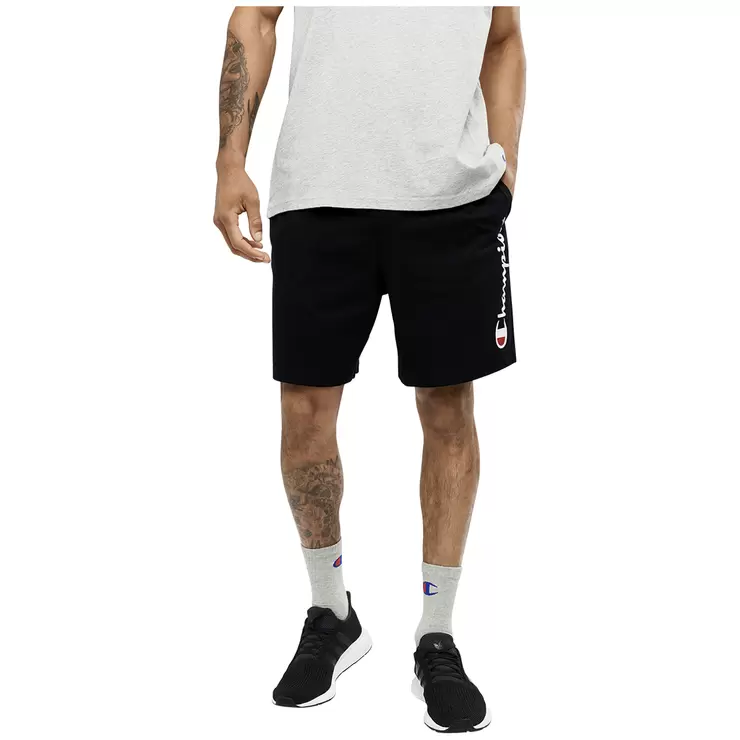 Whether it's for sport or couch, these ultra comfy jersey shorts will have you covered. These shorts come with a downcord waist, side seam pockets and the Champion script logo on the front.