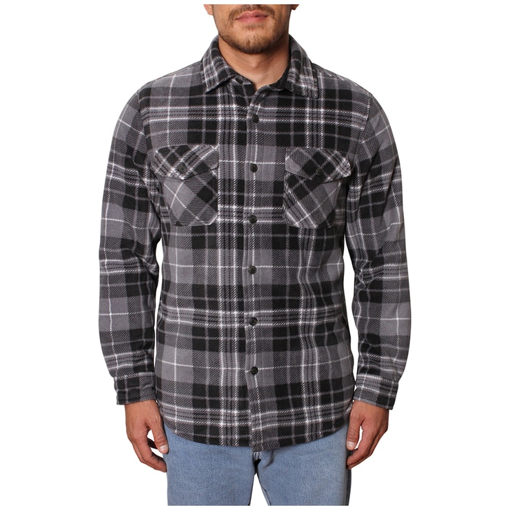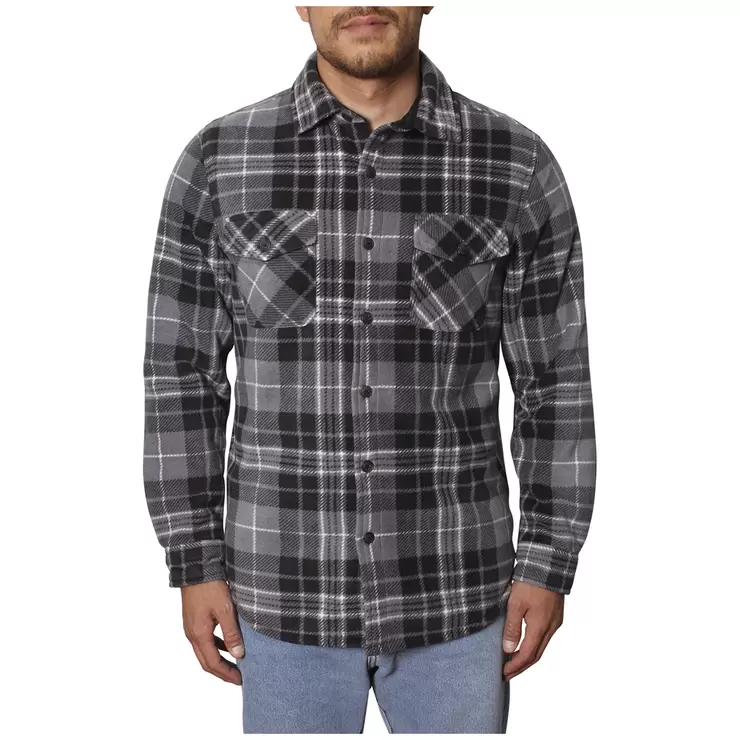 The Freedom Foundry men's plush shirt jacket is made from warm, soft bonded Sherpa fleece fabric, making it ideal for the cooler months. It features two side pockets, double chest flap pockets, and fleece lined lower hand pockets.