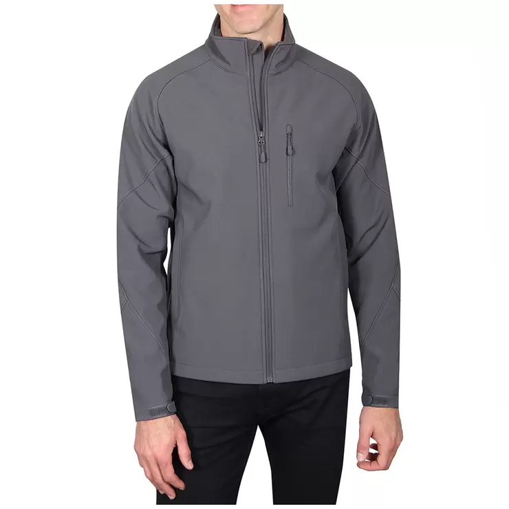 The Kirkland Signature men's soft shell jacket will keep you warm and protected from gusty winds with its windproof exterior and comfortable fleece backing. The water-resistant, breathable, stretchy fabric makes it ideal for cold weather activities from fall to winter. It also offers the style and versatility of multiple pockets for storing your essentials, and the flexible fit afforded by a hem cinch cord at the waist and adjustable tab cuffs.