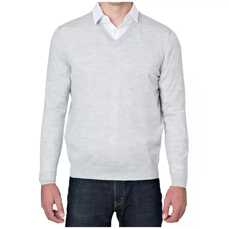 Rough Dress Men's V-Neck Merino Wool Blend Sweater Grey