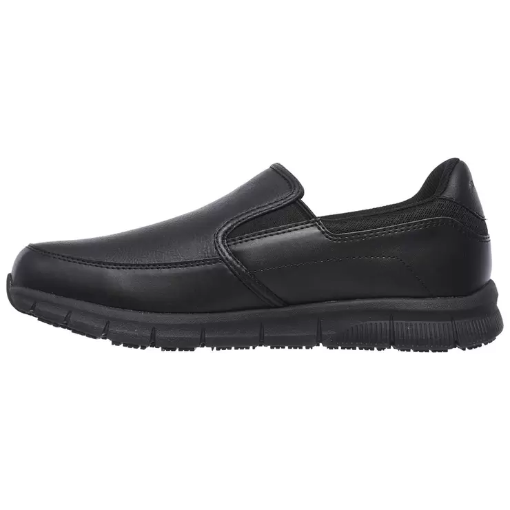 Have a comfortable and safe day every day with Skechers Work Relaxed Fit Nampa Groton. This slip resistant design features a slip on smooth synthetic leather upper and a cushioned Skechers memory foam insole.This product features: