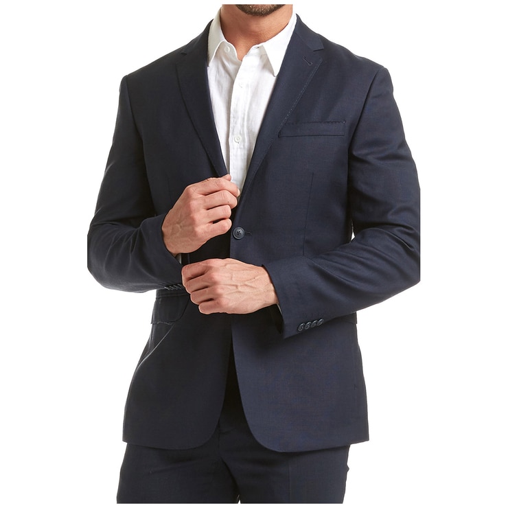 The Sportscraft men's blazer is made from luxurious wool. It has a standard notch lapel, flap pockets, chest welt pockets, cuff buttons, two front buttons, and a single back vent.