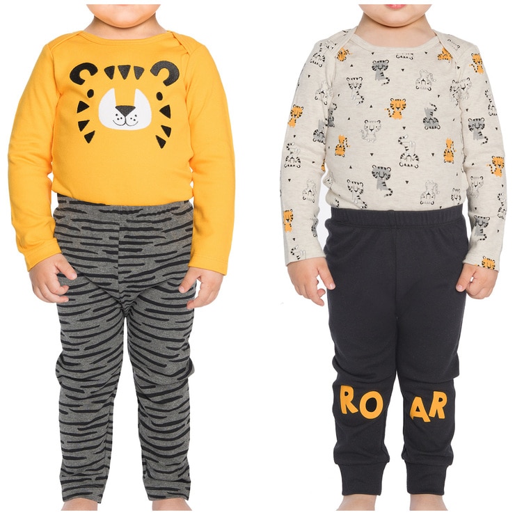 These Pekkle infant sets are crafted in soft cotton and come complete with two long sleeve body suits and two pull on pants. These sets are interchangeable for playful looks, and feature plastic snap tape and overlap shoulders for easy dressing, as well as fun prints, embroideries and appliques.