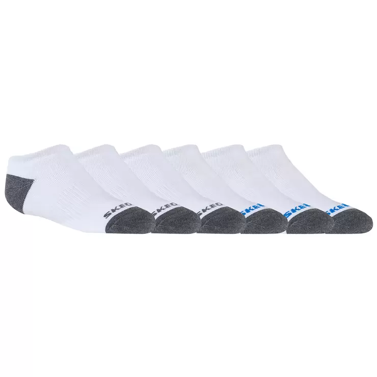 Skechers Boys' No Show Socks 6pk White & Blue