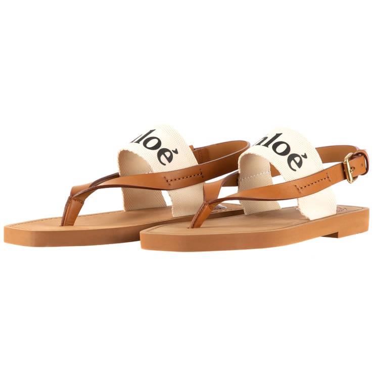 This Chloe Women's Sandal made with calfskin and canvas, is classic summer piece. A perfect addition to your wardrobe. The sleek lines and large logo add a touch of detail making this a staple piece this summer.