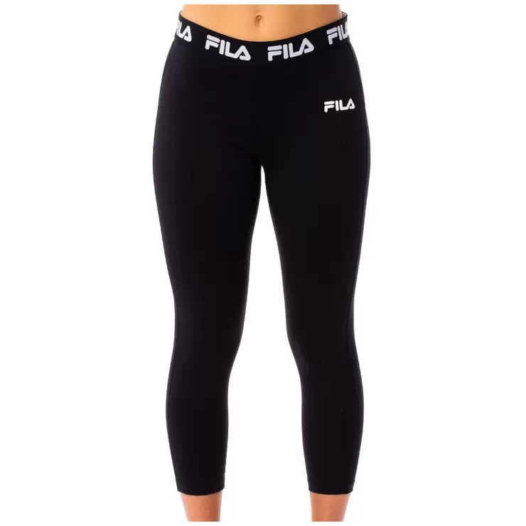 The Fila women's Katana tights are made of soft, stretch fabric, making them ideal for athletic wear. They feature a branded elastic waistband, a logo print on the left hip, and a 3/4 length leg.