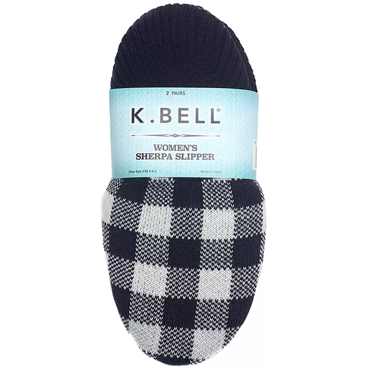 K. BELL Ladies Sherpa Slipper 2-Pair Pack