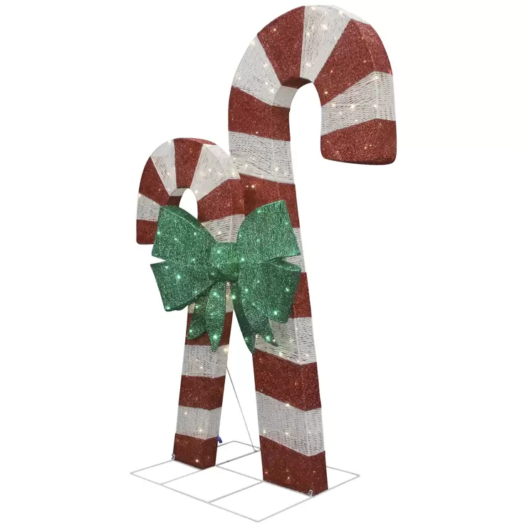 Add a festive flair to your holiday décor with this classic candy cane pairing lit with 220 LEDs total. It is adorned with a cheery green bow to complete the look.