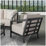The centrepiece of the set is a stunning sintered stone coffee table, offering a sophisticated, high performance surface. This innovative material is ultra durable, resistant to heat, stains and scratches and provides an elegant, easy to maintain option for your outdoor space. The table’s clean lines and natural stone look pair beautifully with the set’s metal frame for a cohesive and stylish design.Cast Grid Back