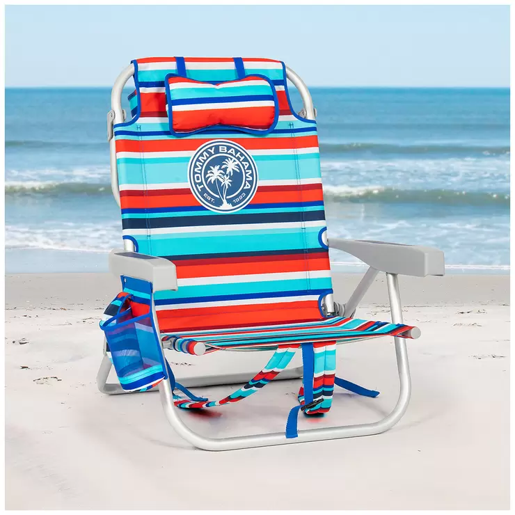 Tommy Bahama 5 Position Aluminium Backpack Beach Chair 2 Pack Royal And Red Stripe