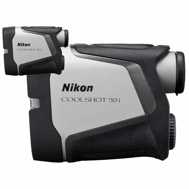 The Coolshot 50i is a compact, medium-class golf laser rangefinder designed to help golfers quickly and accurately measure distances on the course. It features a 6x magnification monocular with a bright internal red OLED display for easy reading in various conditions and can measure from 5 m up to 1,090 m (6–1,200 yd), gives slope-adjusted "golf mode" distances to account for elevation changes as well as actual distance mode (useful for competitions) and uses a "Dual Locked on Quake" system that gives visual and a gentle vibration confirmation when it locks onto the flagstick (even if trees or other background objects are behind the pin). It's lightweight, weather-resistant (rainproof, IPX4) and compact — convenient to carry or attach to a golf cart thanks to a built-in magnet.The product features: