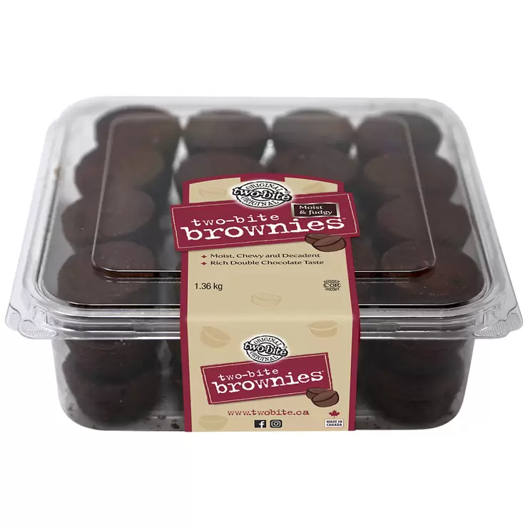 Decadently moist and fudgy Brownie, with rich double chocolate taste. The Original two-bite Brownies, famously Canadian.