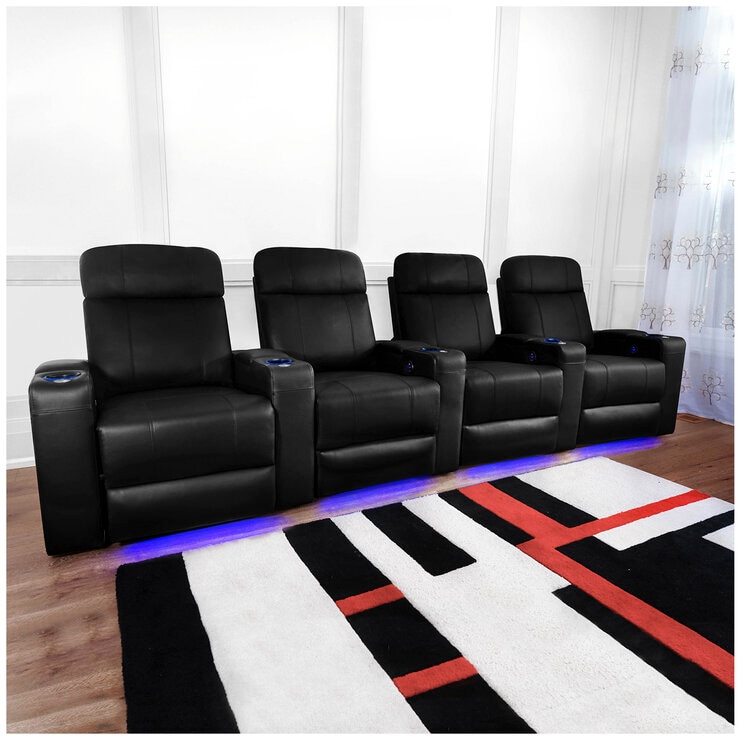 - LED Cup Holders allow you to easily find where you drink is, even in the darkest environment. They can be toggled on and off using the center circle control button to ensure you have an immersive movie experience.