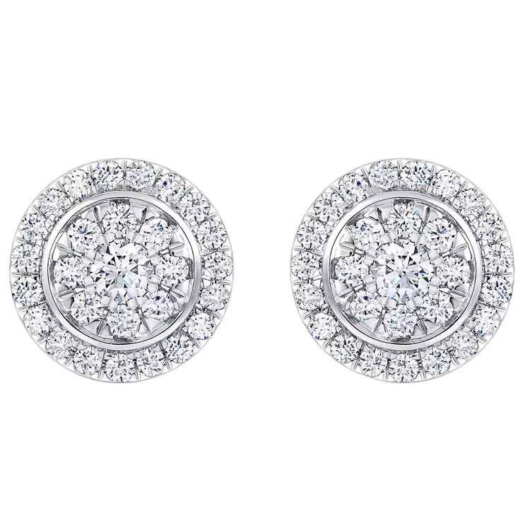 18KT White Gold 0.40ctw Round Diamond Halo Stud Earrings18KT White Gold 0.40ctw Round Diamond Halo Stud Earrings