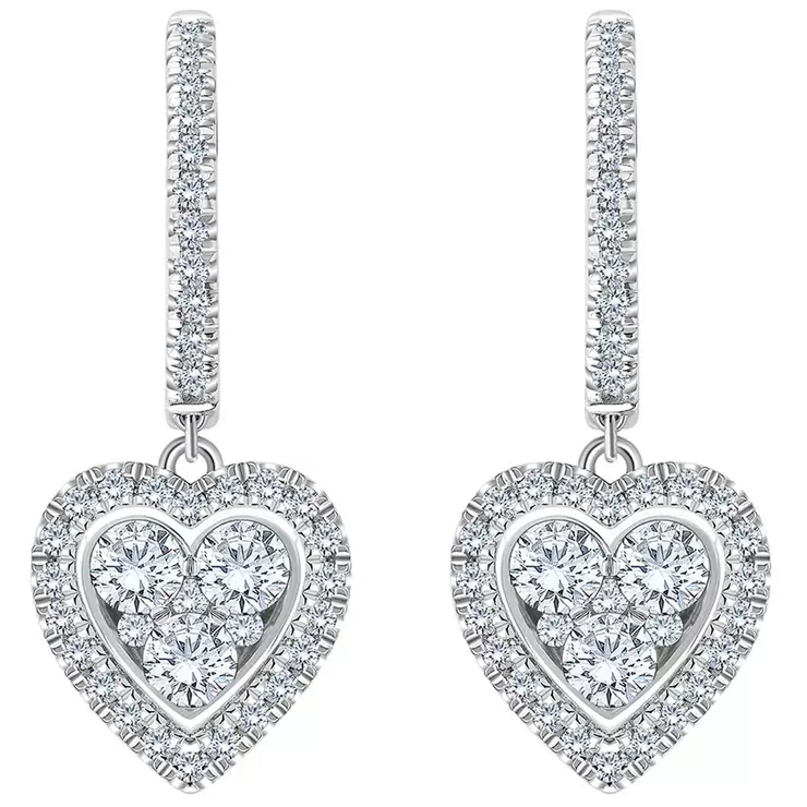 18KT White Gold 0.82ctw Diamond Heart Shape Drop Earrings