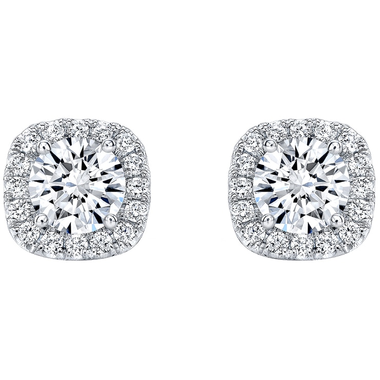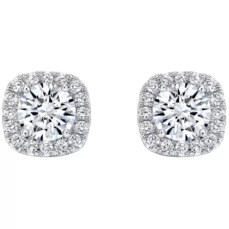 These diamond earrings feature a total weight of 1.72ctw round brilliant cut diamonds set in 18KT white gold.